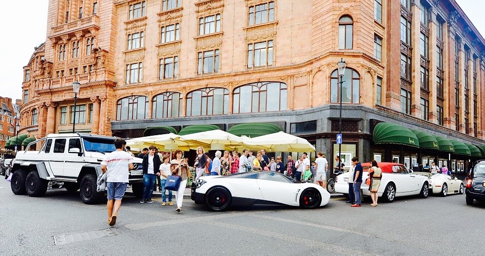 かつての王室御用達百貨店ハロッズの前を走る、シルバークロームのヴェイロンとゴールドクロームの911GT3が連れ立って走っているのを見たことがある。