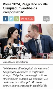 東京2020の次のオリンピック・パラリンピックの開催候補地として手を挙げているのがローマなのだが、最近何かと騒がしい東京の小池知事ではないが、大筋合意で進めていた五輪誘致を突如取りやめると市長が宣言したのだ。